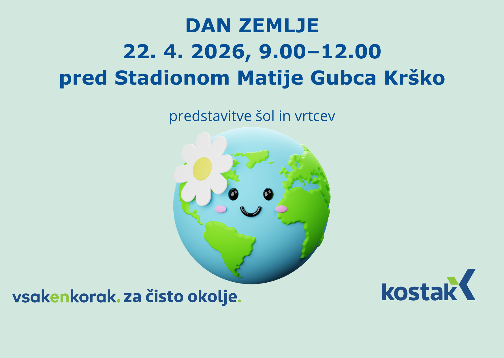 V sredo, 22. aprila 2026, od 9.00 do 12.00, ob mednarodnem dnevu Zemlje, sektor komunale družbe Kostak organizira prireditev pri Stadionu Matije Gubca v Krškem, kjer bo zelo pestro. Dogodek bo potekal v sodelovanju z vrtci in osnovnimi šolami iz mestne občine Krško ter občine Kostanjevica na Krki. Otroci iz okoliških šol se bodo predstavili na stojnicah, izmenjevali knjige in igrač....