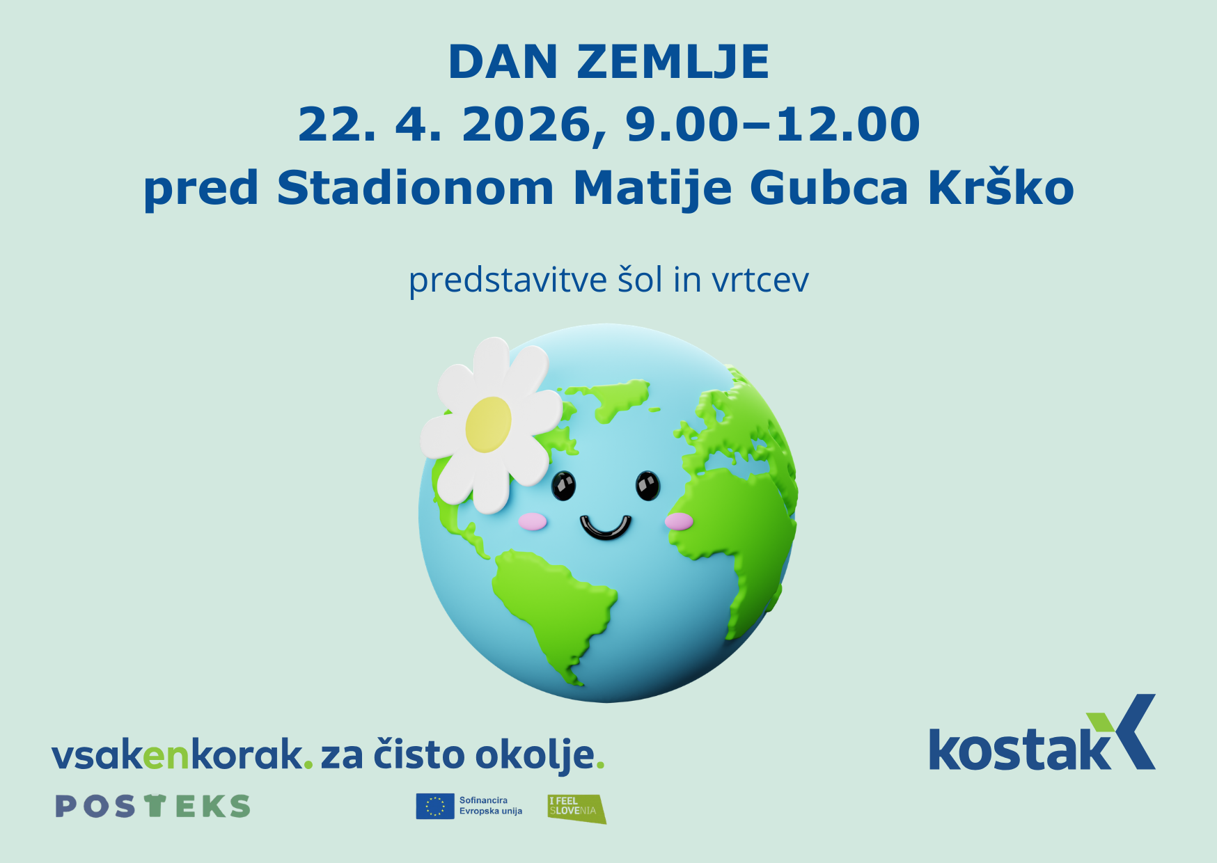 V sredo, 22. aprila 2026, od 9.00 do 12.00, ob mednarodnem dnevu Zemlje, sektor komunale družbe Kostak organizira prireditev pri Stadionu Matije Gubca v Krškem, kjer bo zelo pestro. Dogodek bo potekal v sodelovanju z vrtci in osnovnimi šolami iz mestne občine Krško ter občine Kostanjevica na Krki.