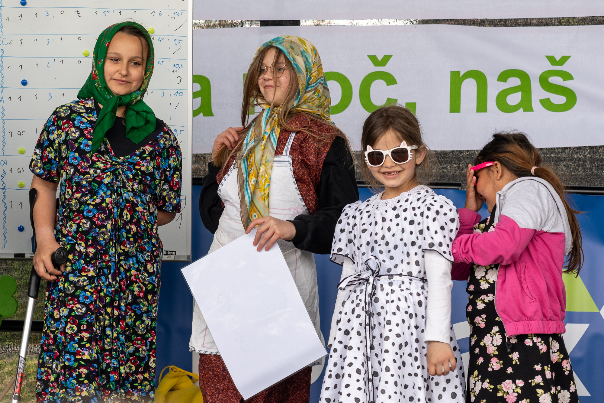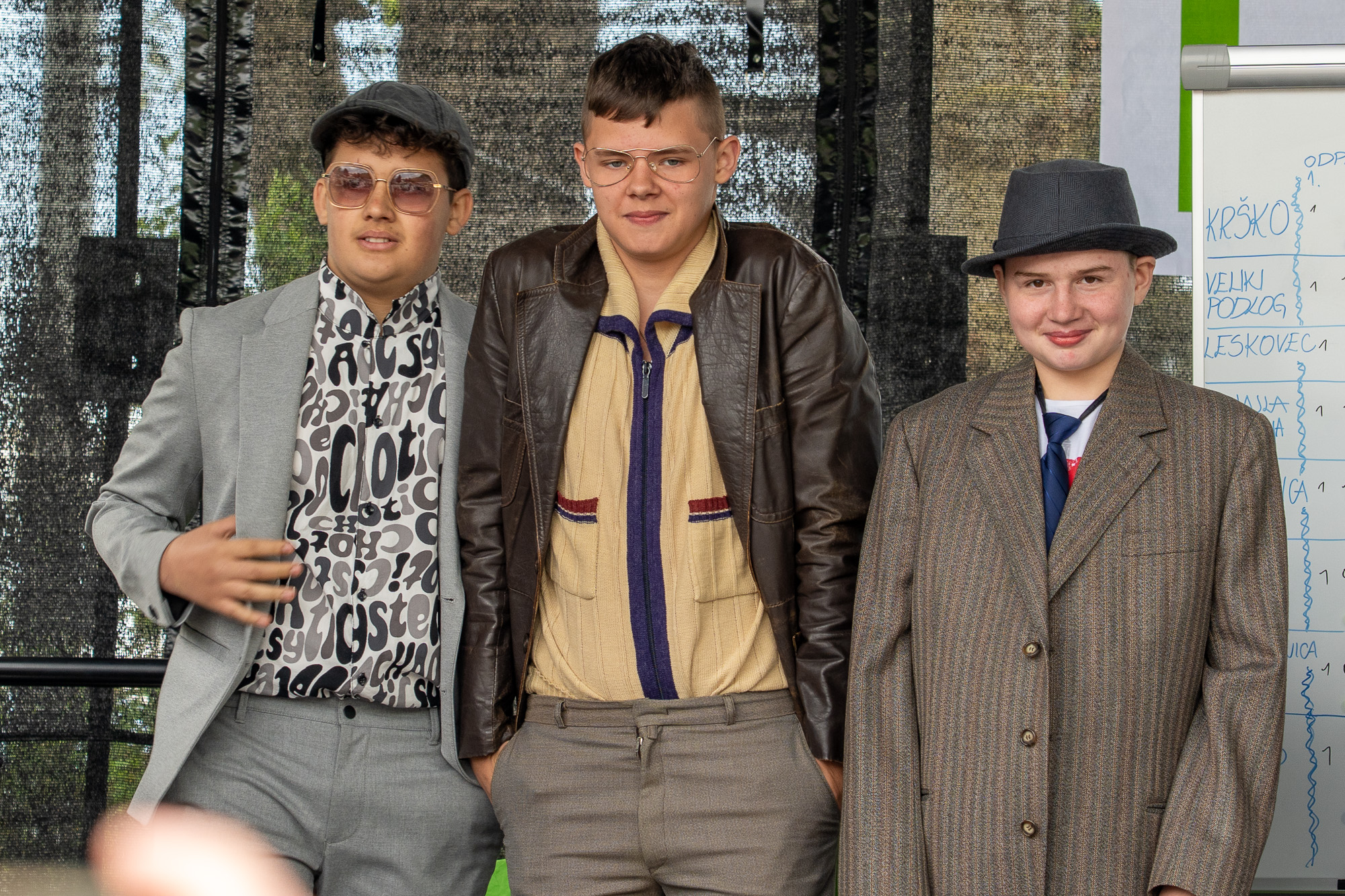 Potekala je tudi tako imenovana 𝐫𝐞𝐭𝐫𝐨 𝐦𝐨𝐝𝐧𝐚 𝐫𝐞𝐯𝐢𝐣𝐚. Otroci so v omarah svojih staršev poiskali zanimive kose oblačil iz njihove mladosti ali oblačila, ki so se prenašala iz roda v rod in jih je nosilo več generacij. V njih so se sprehodili po modni pisti ter o oblačilih povedali kratko zgodbo in komu so pripadala. Modna revija je potekala pod budnim očesom strokovne komisije, ki je ocenila, da so 𝐳𝐦𝐚𝐠𝐨𝐯𝐚𝐥𝐜𝐢 𝐩𝐨𝐬𝐭𝐚𝐥𝐢 𝐦𝐨𝐝𝐞𝐥𝐢 𝐢𝐳 𝐎Š 𝐉𝐮𝐫𝐢𝐣𝐚 𝐃𝐚𝐥𝐦𝐚𝐭𝐢𝐧𝐚 𝐊𝐫š𝐤𝐨. Odlično pa so se odrezali tudi drugi sodelujoči iz OŠ Raka, OŠ dr. Mihajla Rostoharja Krško in OŠ Leskovec pri Krškem, ki so prav tako prejeli nagrade. Ocenjevali smo izvirnost, zgodbo oblačila in nastop. Z modno revijo smo želeli spodbuditi ponovno uporabo tekstila, povezovanje generacij in skrb za naš planet.